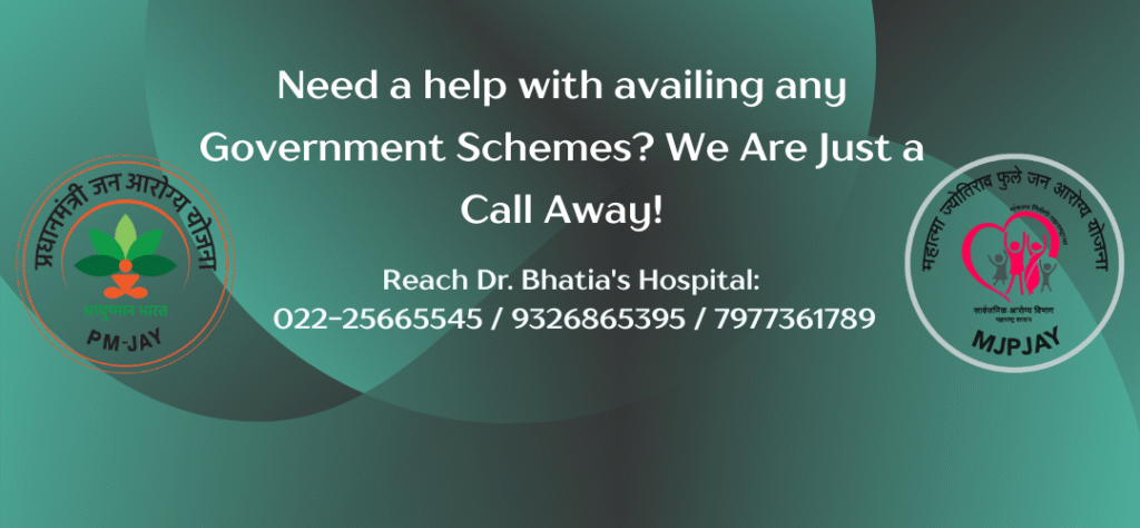 At Dr. Bhatia’s Hospital, we believe that quality healthcare should be accessible to everyone. Dr. Bhatia’s Hospital feels proud to be the only hospital in Bhandup approved to offer multiple government health schemes, extending a helping hand to those in need: